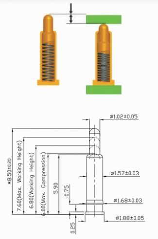 ポゴピン(スプリング式コネクタ)の基本作動高さ:
