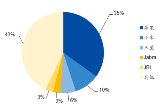 ブランド流通の観点から、TWSヘッドセット市場は最初にAppleによって爆発しました。 数年の開発の後、その製品AirPodsは、ミッドエンドからハイエンドの市場で非常に高い市場シェアを持っています。 Counterpointの分析データによると、2020年の第2四半期の時点で、TWS市場の上位3社はApple(35%)、Xiaomi(10%)、Samsung(6%)です。 市場。